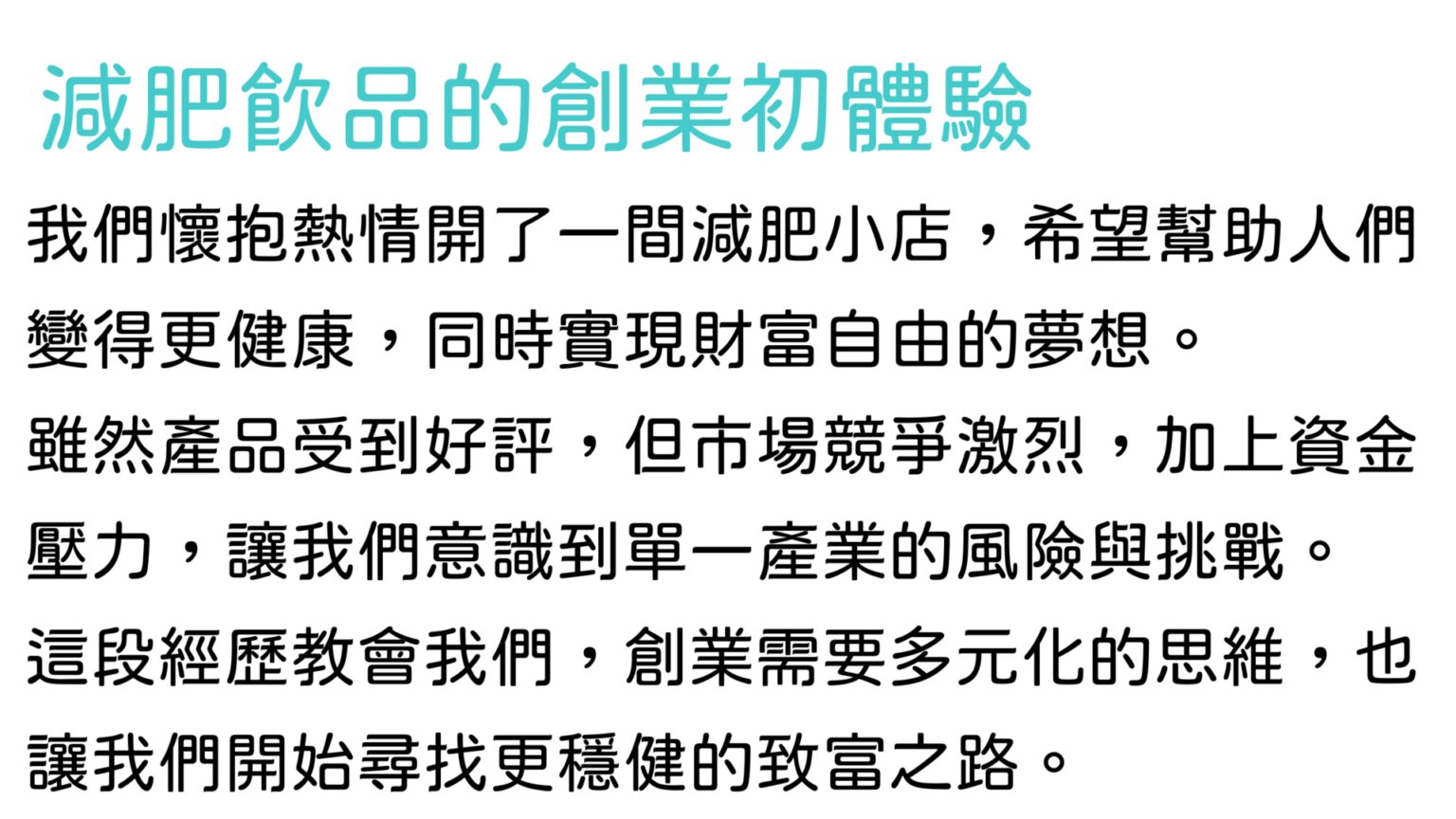 減肥飲品的創業初體驗